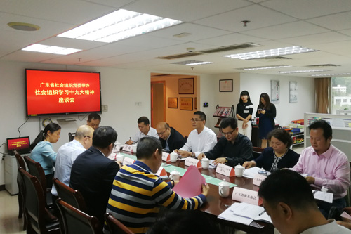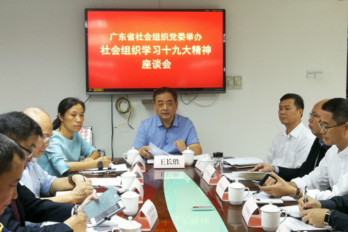 10月20日下午,省社会组织党委在省社会组织总会会议室召开社会组织学十九大精神座谈会,广东省民政厅党组成员、巡视员、省社会组织党委书记王长胜主持会议并讲话。省社会组织管理局局长庄侃以及省社会组织总会会长叶秀仁、省家具协会会长王克等17名全省性社会组织负责人参加座谈。