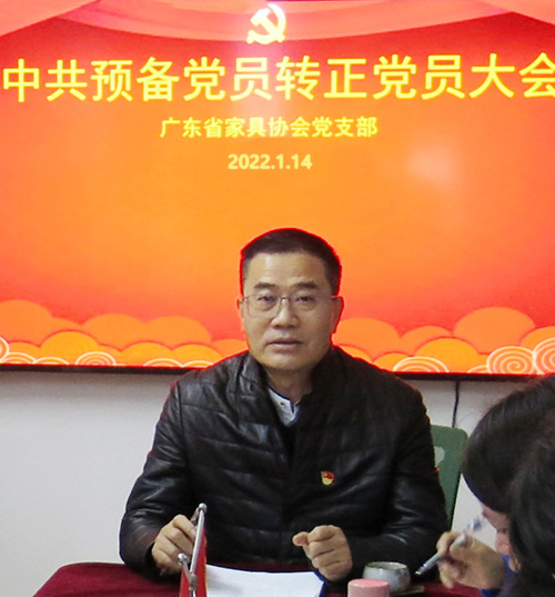 党支部书记王克在会上发表讲话,辛宝珊同志在工作中积极认真,与同事相处融洽,不断成长和进步,在预备考察期间,通过加强政治学习和思想汇报,不断地提高对党的认识,提高工作能力和统筹协调能力,同意转正为中国共产党员。王书记对辛宝珊同志提出三点期望:一、希望在政治上,按照中央和省委的部署要求,加强党的理论知识和学习,切实提高政治站位和政治素养。二、希望在工作中,加强业务和行业知识学习,提高业务能力、统筹能力、写作能力,学以致用。三是要注重发挥党员的先锋模范带头作用,把党的优良传统和作风发扬光大,积极参加协会各项党建活动和工作,努力为家具行业发展发挥应有的作用。 会后,按照有关规定,协会党支部将本次会议情况和投票结果整理成报告及时上报省社会组织党委审批。