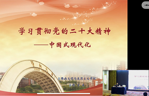暨南大学马克思主义学院院长、教授程京武,为大家讲授题为“学习贯彻党的二十大精神——中国式现代化”的党课。广东财经大学马克思主义学院副院长、教授孙晓晖,为大家讲授题为“全面提高新时代党支部建设质量——社会组织基层党务工作实操”的党课。