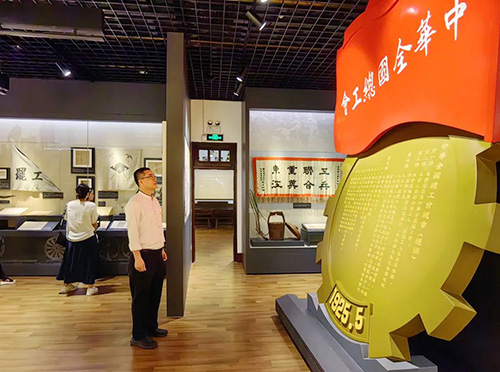 大家首先走进中华全国总工会旧址。中华全国总工会旧址纪念馆的文物史料生动讲述近百年前中国共产党领导工人运动的光辉历史,记录中华全国总工会诞生历程。顺着时间线依次看到“全总的成立”、“领导工人运动”、“培养工运干部”、“召开第三次全国劳动大会”、“发展工会组织”和“前行:永远跟党走”六个部分。党员、群众通过一张张老照片、一件件珍贵展品,全面、系统地了解中华全国总工会的诞生及其在广州领导开展工人运动的历史。