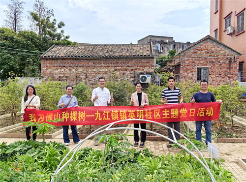 3月13日, 党支部书记、会长带队赴佛山市南海区九江镇英明社区开展“共建奋进英明公益林,我为佛山种棵树”主题党日活动,参观了此前协会党支部与英明社区共建村企公益林中100棵捐赠树木的生长情况,了解英明社区辖区内河涌环境、人居环境等情况,并在社区新开发的小菜园种上嘉宝果树,为小菜园增添了春意。