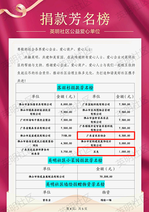 为贯彻落实省委社会工作部召开的广东省行业协会商会助力“百县千镇万村高质量发展工程”推进会精神,党建引领、聚会凝心,充分发挥行业协会商会扎根行业、贴近企业优势,及时谋划推进广东“千会万企”助力“百千万工程”。近日, 收到一封来自党建共建单位佛山市南海区九江镇英明社区的感谢信。感谢省家协对英明社区的帮助与支持,共同推动社区治理主体多元化,为打造和谐美好社区携手共进。