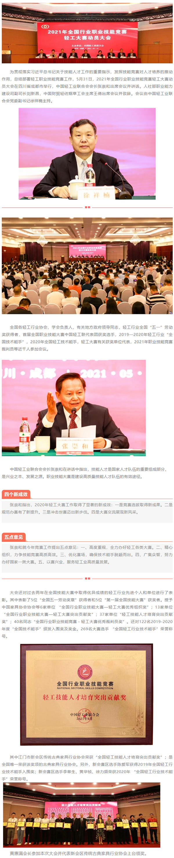 新会家协及新会赛区4名选手在全国轻工职业技能大赛动员大会上受到表彰