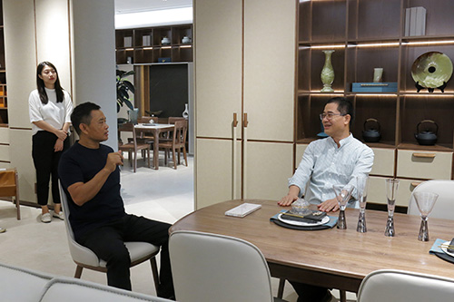 在听取赵崇伟董事长介绍后,王会长对健威广场的商业定位精准,健威家居的创新应变,发挥品牌影响力,为拉动消费,为行业发展作出的贡献表示赞赏。他表示,当前国家提出构建以国内大循环为主体、国内国际双循环相互促进的新发展格局,家具企业也肩负扩大内需、拉动消费的责任。希望健威集团加强差异化服务,加大开拓内需市场,针对不同的消费群体,开发具有企竞争优势的产品。在产品设计,新材料、新工艺和色彩应用中,形成企业独特的品牌。面对市场和消费对象的变化,企业在市场销售、产能布局等方面也要应变创新,充分利用国内国际两个市场、两种资源的优势,在“双循环”新发展格局下,实现高质量发展。