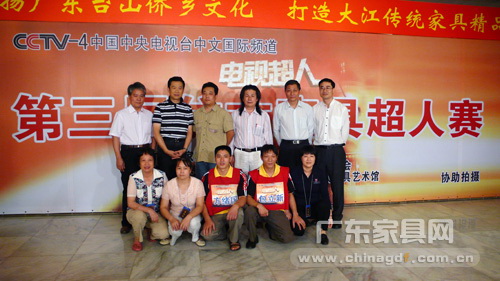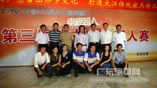 10月10-11日,来自我省中山、顺德、新会、大江等地六家代表性企业,12名企业员工,经过两天、两个回合、两次复活赛、决赛等激烈的比赛,在11日下午六点CCTV 中央电视台“第三届仿古家具电视超人赛”终于有了结果,冠、亚、季军名花有主,晚上在碧桂园凤凰酒店一楼凤凰国际会议中心,举行了盛大的庆功宴会,标志着本次比赛取得圆满结束。