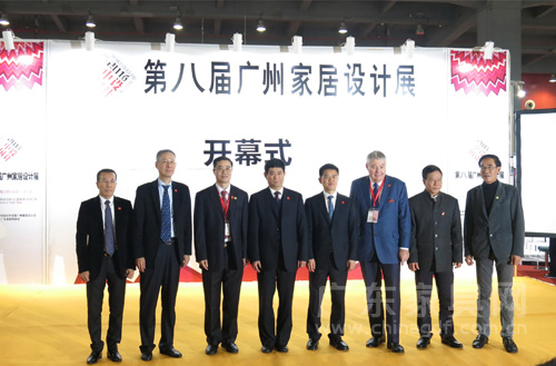 会长王克、执行会长杜泽桦,中国对外贸易广州展览总公司总经理李德颖,美国高点家具博览会总裁及首席执行官Mr. Tom Conley,广东省工业设计协会会长胡启志,广州市家具协会会长陈达强共同为本届设计展揭幕。