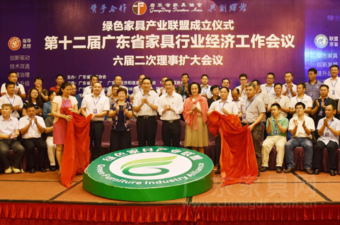 8月5日,绿色家具产业联盟成立仪式在广州举行。 广东产品质量监督检验研究院院长陈锦汉,广东省商务厅公平贸易局处长岳阳,广东省经济和信息化委员会珠江西岸装备产业带推进办公室调研员区毅勇、消费品工业处科长方乐羽,中国家具协会秘书长张冰冰,广东省环境保护厅大气环境管理处科长段献忠,广东省林业厅科长吴灿军, 会长、绿色家具产业联盟领导小组组长王克, 执行会长杜泽桦、何广经、陈桂芳、任作辉、梁纳新、吴赤宇,绿色家具产业联盟领导小组副组长:广东省涂料行业协会会长黄开、广东省林业产业协会副会长黄国如、国家家具产品质量监督检验中心(广东)主任海凌超、国家涂料产品质量监督检验中心(广东)主任陈纪文、广东质检中诚认证有限公司总经理张玫,来自33个首批申请入盟企业代表、全省各地家具产业集群、地方协会、研究机构、专业院校,以及家具、涂料、人造板行业骨干企业的领导和代表,新闻媒体记者近300人出席了成立仪式。 在省商务厅、省经信委、省质检院、省环保厅、省林业厅、中国家协等指导单位领导的见证下,联盟的7个发起单位的领导共同揭幕,宣告绿色家具产业联盟正式成立。
