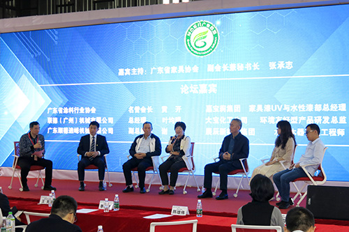 “油改水”乃国家政策所引导,势在必行。在绿色观念深入人心的时代,“油改水”越来越迎合消费者对环保产品的需求和诉求,也已经成为行业和市场的共识,促使许多企业纷纷转型,生产出迎合市场需求的环保涂料和开发出相应的涂装技术。省涂料行业协会名誉会长黄开、嘉宝莉集团家具漆UV与水性漆部总经理屈玉山、大宝化工环境友好型产品研发总监江宛芸、展辰新材料水性木器研发工程师罗文兴、联德(广州)机械总经理叶均明、迪峰机械副总经理谢清则分享了涂料涂装行业的发展和应用。