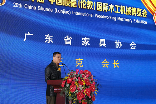 在开幕式上, 会长王克作了题为《切实提高家具装备国产化应用水平》的讲话,对连续举办了20年的伦教木工机械博览会表示祝贺,同时结合全省推动制造业高质量发展大会精神和我省家具装备发展情况,提出家具装备企业要走功能化、智能化、信息化、现代化的装备发展之路,切实提高家具装备国产化应用水平,提倡家具制造企业优先选购优质先进的国产木工机械和家具装备,共同推动广东制造业高质量发展。讲话概要如下: 业界素有:“中国家具看广东”、“中国木工机械看广东,广东看伦教”的美誉。伦教木工机械展在著名的“中国木工机械重镇”连续举办了20年,从无到有、从小到大、从伦教走向中国、走向世界。展会在加深行业交流和合作、推动木工机械制造业自主创新、助推企业品牌成长、提升行业竞争力等方面发挥了重要作用,充分展现了伦教在木工机械发展进程中发挥的标杆与引领作用。这是继每年三月举办的中国(广州)家博会家具生产设备及配件辅料展之外的一个重要专业展会,可喜可贺。 当前,我省正在推动制造业高质量发展。11月21日,省委李希书记在全省推动制造业高质量发展大会上强调,广东要实施强核工程、立柱工程、强链工程、优化布局工程、品质工程、培土工程等“六大工程”,攻坚克难突破重点领域关键环节,不断开创制造强省建设新局面。一要实施“强核工程”,以科技创新核心竞争力推动广东制造从根本上强起来。二要实施“立柱工程”,在新的高度挺起广东制造的产业脊梁。着力打造百亿级、千亿级、万亿级梯次发展的先进制造业集群。其中,包括部分家具制造、装备制造产业集群的发展。三要实施“强链工程”,打赢产业链现代化攻坚战。四要实施“优化布局工程”,推动广东制造立足“一核一带一区”构建高质量发展空间。五要实施“品质工程”,高高树立广东制造质量标杆。六要实施“培土工程”,以培育“广东技工”为重点塑造制造发展环境新优势。