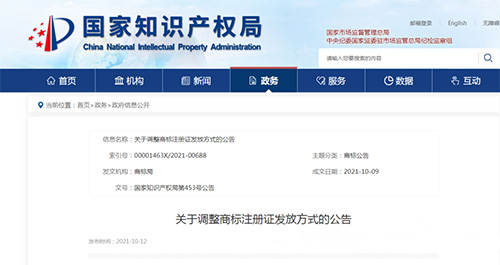 国家知识产权局关于调整商标注册证发放方式的公告2021-10-13 来源:国家知识产权局网站